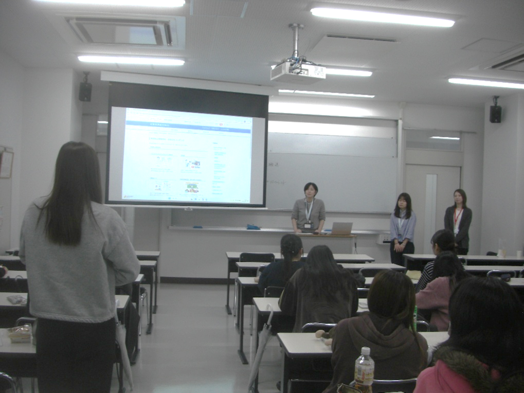養護教諭の免許を取得予定の4年生が教職実践演習の授業で、独立行政法人日本スポーツ振興センター 災害共済給付事業部大阪給付課の先生方から、「災害共済給付に関する業務・安全教育について」の講義を受講しました。