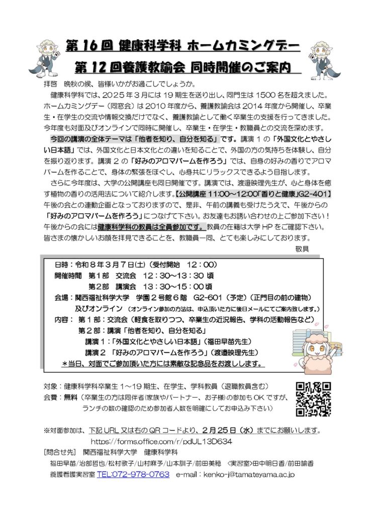 第16回 健康科学科 ホームカミングデー&第12回養護教諭会 同時開催のご案内